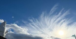朝の七時台だったと思います。ふと見上げたら筋状の綺麗な雲が青空に出ていて思わずiPhoneでパチリしました。
