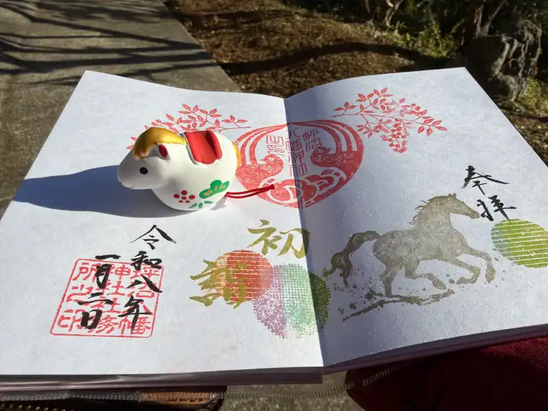 御朱印がこちらです。馬の置物はおみくじですが大吉でした。