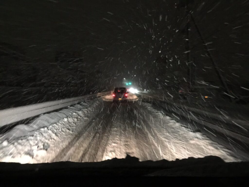 このような降雪時の夜間走行は、走行そのものが困難になります。
